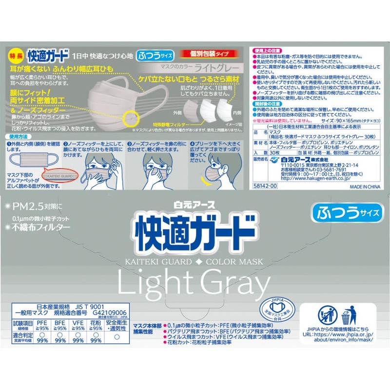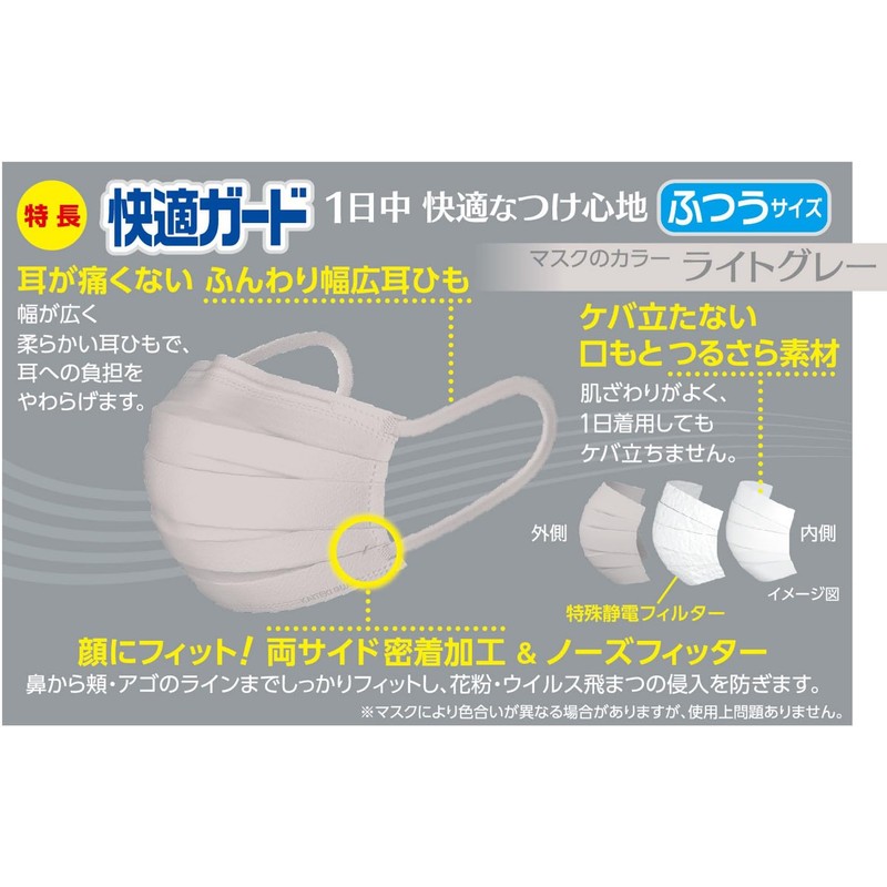 快適ガードマスク ふつうサイズ ライトグレー 30枚入 カラーマスク