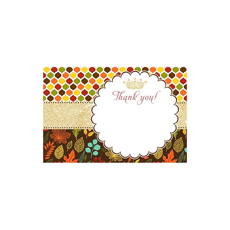 30 Blank Thank You Cards Fall Autumn Leaves Prince Princess Baby Shower Sprinkle + 30 White Envelopes