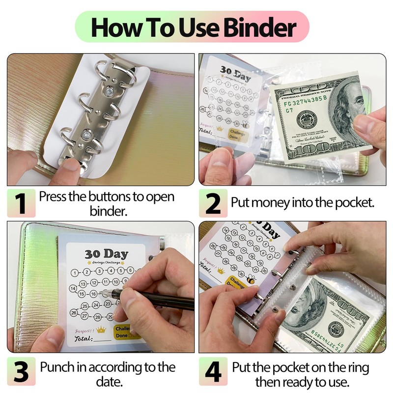 - 💰Superior Material: Thickened PU Leather savings binder is scratch-resistant and sturdy, waterproof and tear proof, keep and secure your money. It's easy to carry and fits in your backpack, so you can save money anywhere