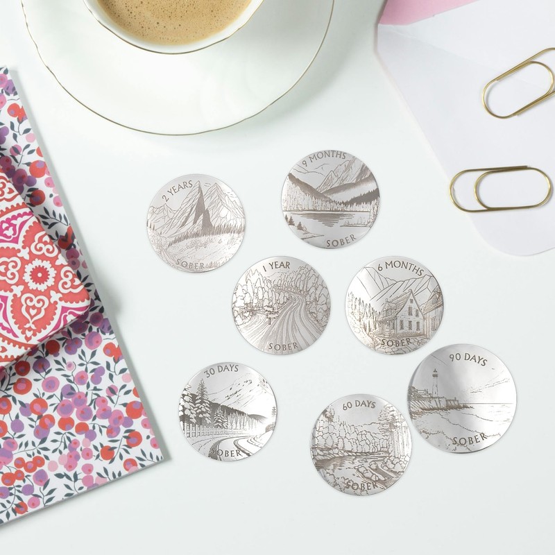 - Sobriety Anniversary Selection: Every success of sobriety is worth commemorating and preserving. Available in 30/60/90 Days, 6/9 Months and 1/2 Years, more milestone will update soon