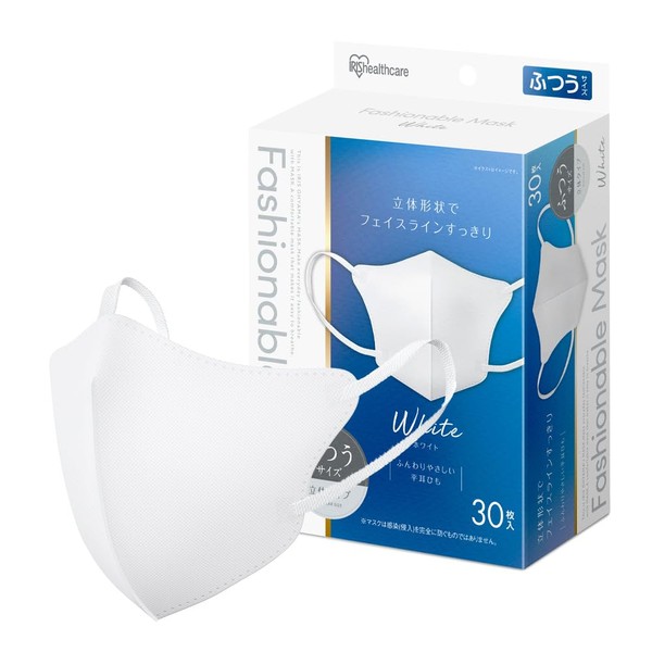 [アイリスオーヤマ] 立体型マスク 30枚入 不織布 ふつうサイズ ホワイト カラー FASHIONABLE MASK RN-FA30SW