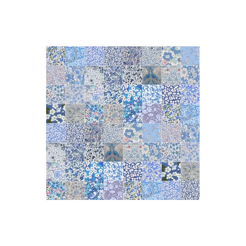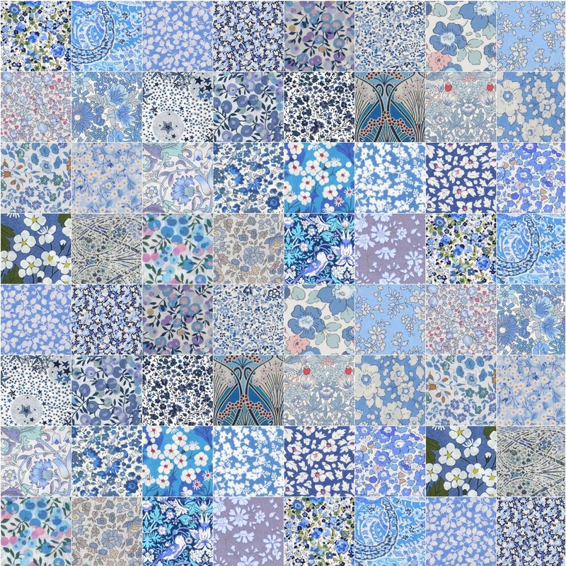 - Variety: This set includes 30 squares of Liberty Tana Lawn fabric in a range of blue floral patterns.