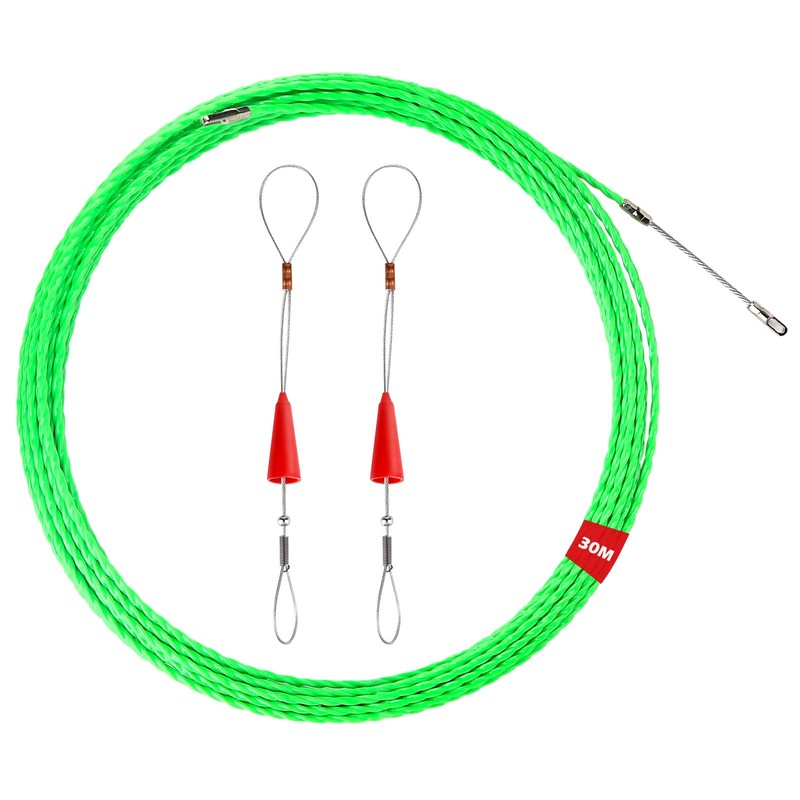 30 m cable retraction aid spring retracting spiral cable pull aid with 2 guide springs, cable retraction aid pull wire for empty pipes retracting tape diameter 5 mm for retraction tape for cable laying