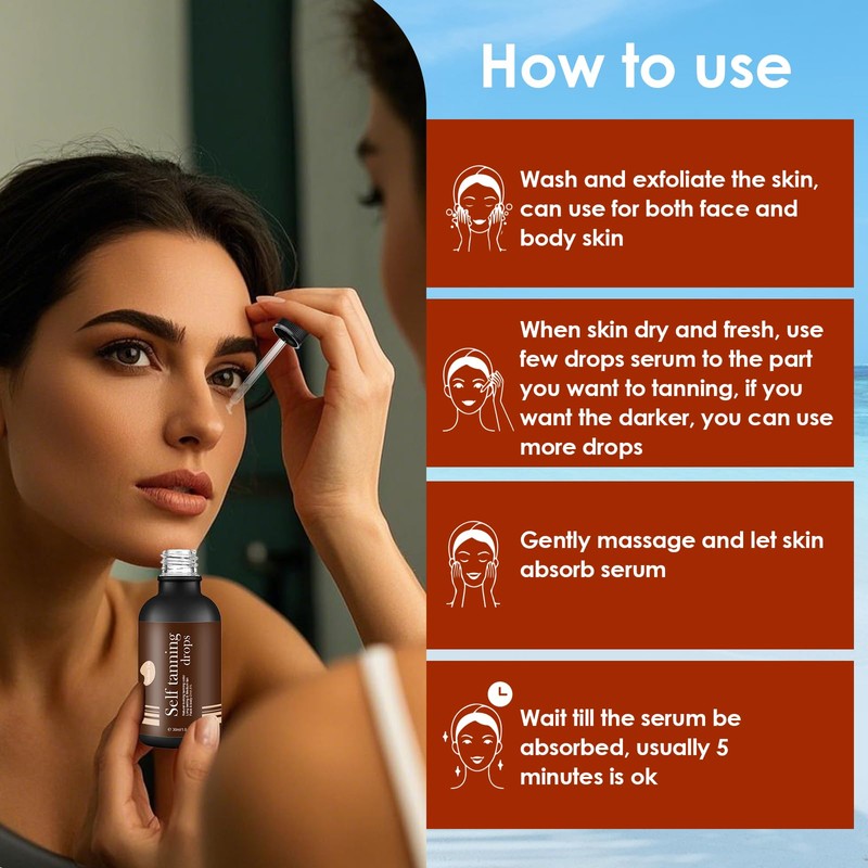 - EASY AND CONVENIENT TO USE Depending on the intensity of tanning, mix a reasonable amount of essence drops with your commonly used nourishing cream in the palm of your hand to completely blend, and lubricate it evenly on the part you need to use so that the beginner can easily master it.