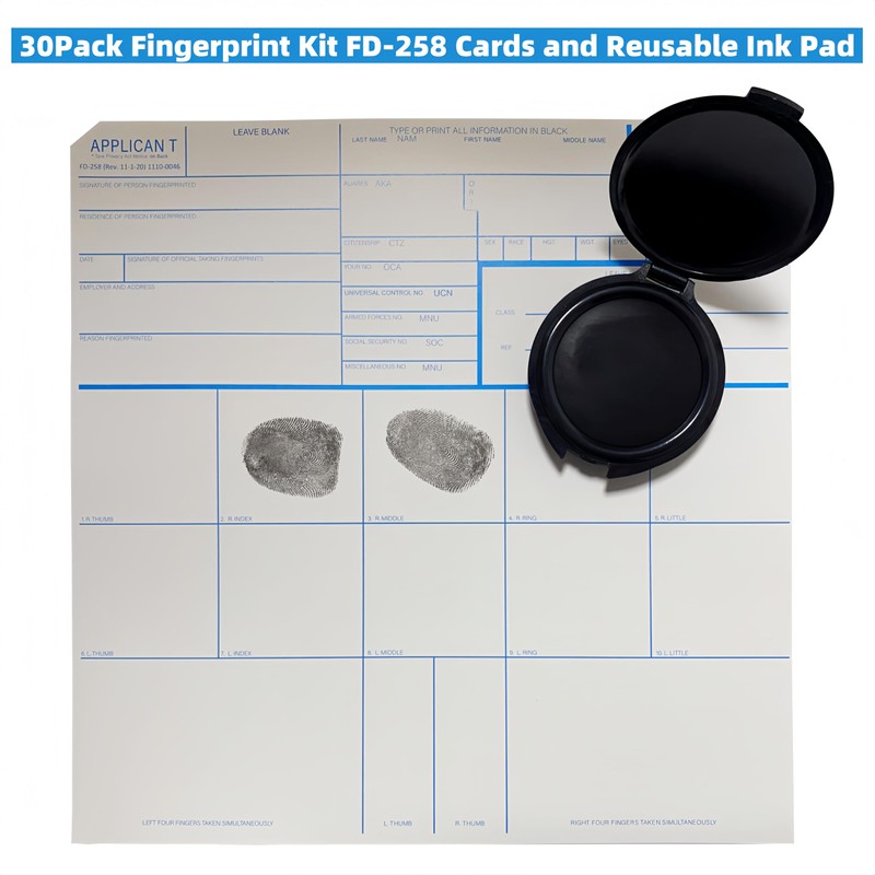 The 30-Pack FD-258 Fingerprint Kit is the perfect toolset designed for efficient fingerprint collection, ideal for various fingerprinting and identity verification applications. Each kit includes a reusable ink pad, detailed instructions, and the latest 2025 version, ensuring you have the most up-to-date and accurate fingerprinting technology.
