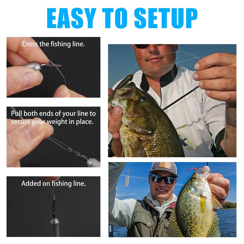 • The lead weight sinkers would not get hung up just like the teardrop or round drop shot weights and be able to jig it up or down easily.