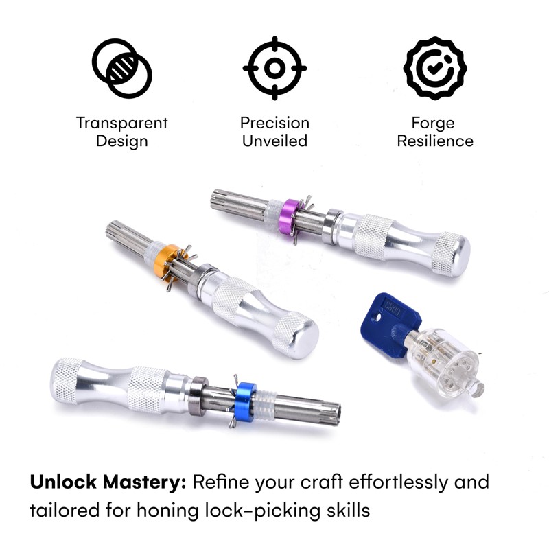 - 🔒 LOCKPICK TRAINING KIT : "Peek" inside the lock mechanisms and see how everything works with the 3 transparent locks included. Master picking the different lock types from level 1 to level 4.
