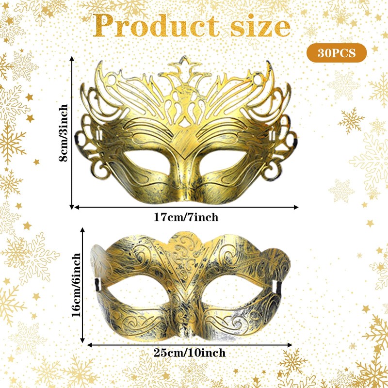 30 Pieces Masquerade Masks Venetian Mardi Gras Antique Masks with Strap for Women Men Carnival Prom Mask Party