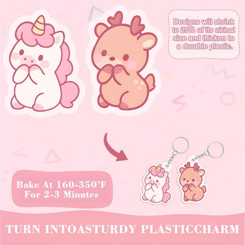 • 【Widely used】Shrink plastic paper is perfect for DIY key chains, pendants, bookmarks, jewelry, earrings, necklaces and decorations, etc. Our shrink plastic sheets offer endless creative possibilities