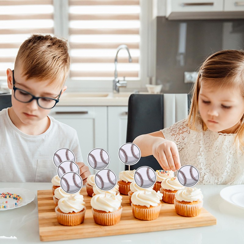 Perfecto para fiestas temáticas de béisbol, fiestas temáticas de pelotas deportivas, fiestas temáticas de baby shower, suministros de decoración de cupcakes.