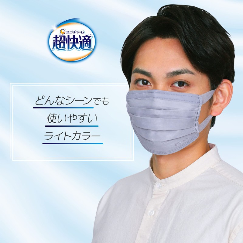 超快適マスク 風邪・花粉用 プリーツタイプ ライトグレー 不織布マスク 日本製 ふつうサイズ 30枚入 〔PM2.5対応 ノーズフィットつき〕(ウイルス飛沫カットフィルタ)〔JIS規格適合審査済み〕〔全国マスク工業会 会員マーク表示〕ユニチャーム