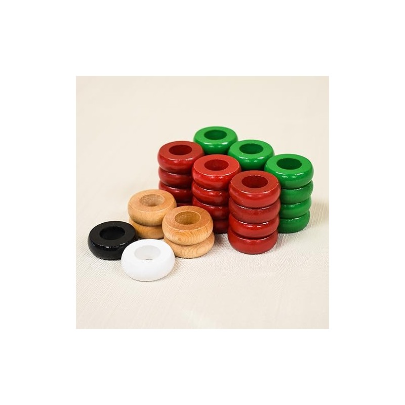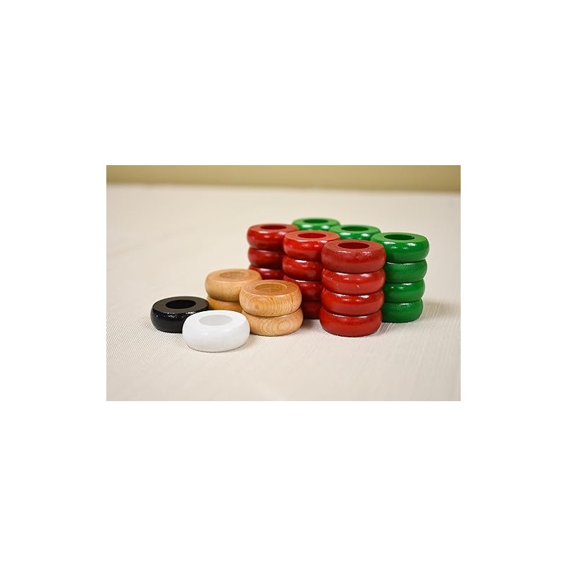 - Included: 30 large carrom / pinnochi / pichenotte rings; 12 red, 12 green, 4 natural, 1 black, 1 white. These are for pinnochi / pichenotte boards but can also be used for replacement pieces for carrom and crokinole game boards