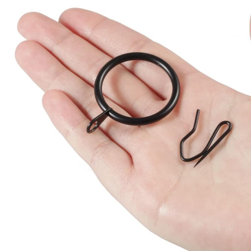 - 【Package Includes】30 pieces metal drapery curtain rings and 30 pieces metal pin hooks(Bronze). The inner diameter of the curtain ring is 30mm/1.18in, suitable for curtain rods less than 27mm/1.1in. And the curtain pin hook is 25mm/0.98in high and 20mm/0.79in wide, suitable for most curtains. Please confirm the size before purchasing.