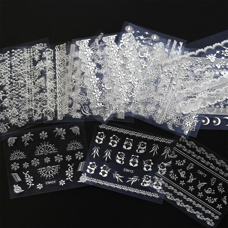 - Easy to Use:Silver 3D self-adhesive nail stickers, it is very easy to apply. Just choose a suitable pattern and apply it on the nails in the correct position, you can use a layer of nail polish to fix for long-term lasting