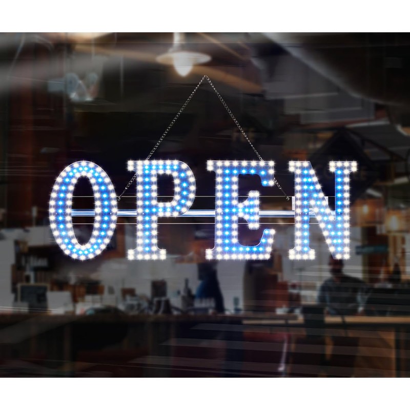 30"x10" LED Open Sign for Business - Ultra Bright Light with Hanging Kit, Window Business Sign Store Sign for Retail, Restaurants & Offices (White-Blue)
