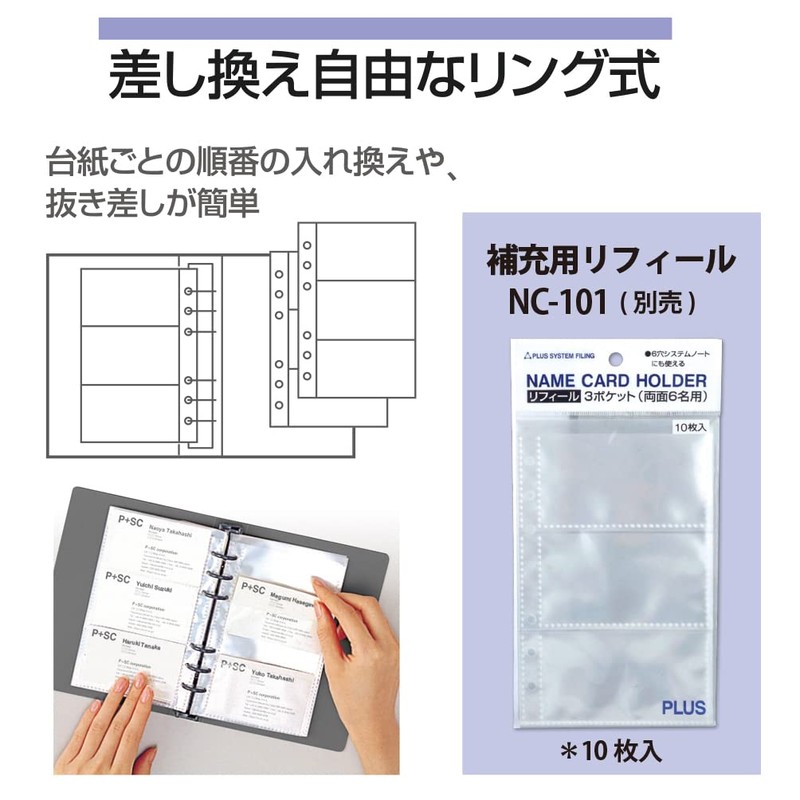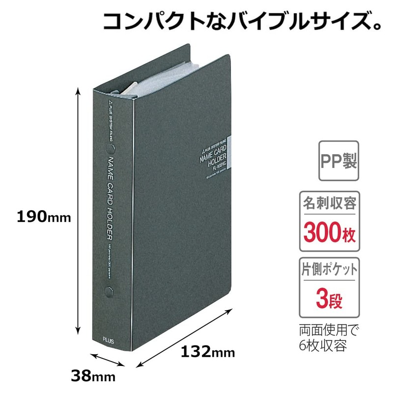 プラス 名刺ホルダー 300名用 ハンディ 6穴リング FL-108NC 84-281 ダークグレー