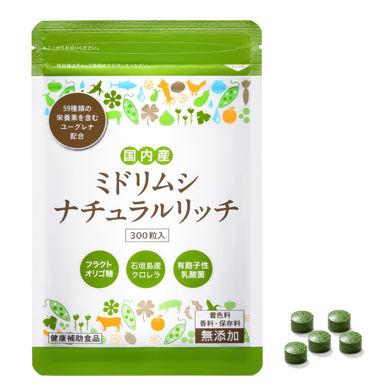 【無添加】ミドリムシナチュラルリッチ 300粒 小粒タイプ 開発者:ユーグレナ