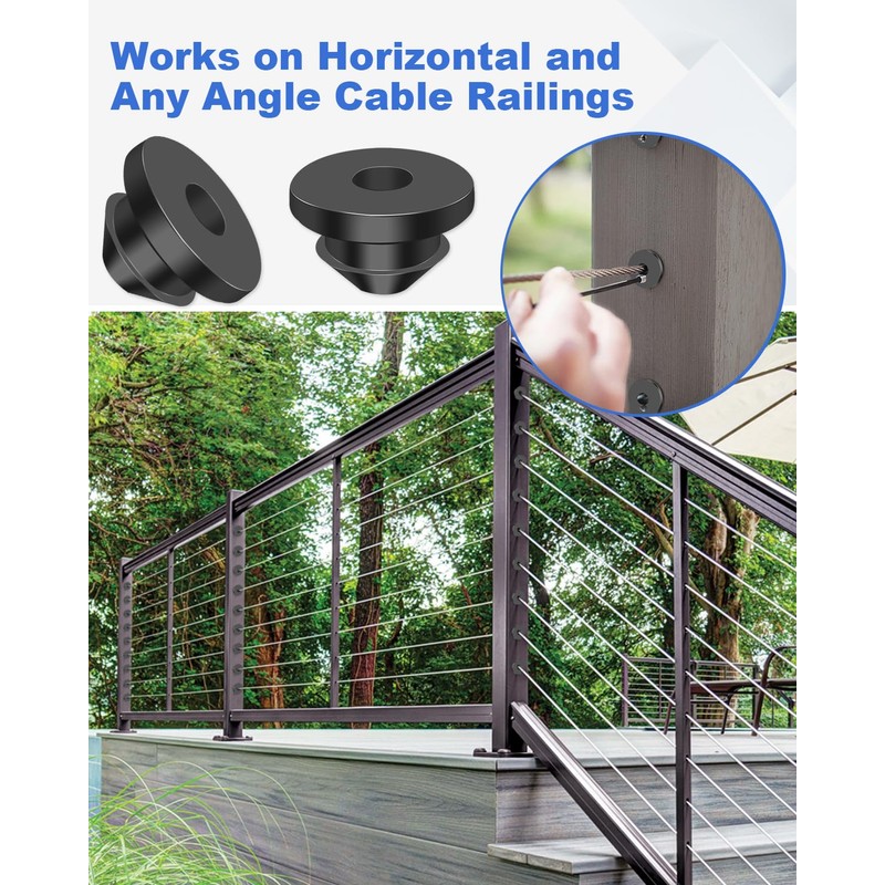 - Reminder: You will get a 300* cable railing post grommet, the cable railing protection kit can be perfectly installed on the vertical cable railing hole, but if it is a cable railing hole with a slope, please confirm whether the size and angle are suitable
