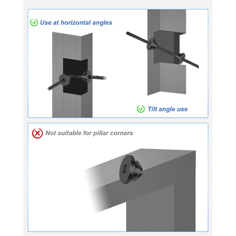 - Multi-Site Application: Cable railing protection kit fits 1/8" 5/32" 3/16" cable for metal cable railing posts, can be used in residential/commercial/indoor outdoor handrails/boat fencing etc.