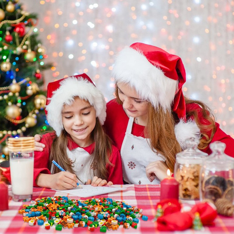 300 Pieces Mini Erasers Assortment Christmas Theme Erasers Kids Pencil Erasers Bulk for Party Favor, Gift Filling, Home School Work Reward
