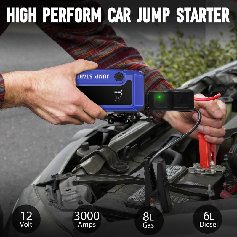 3000A Peak Car Battery Jump Starter, Portable Auto Booster Jump Starter,
