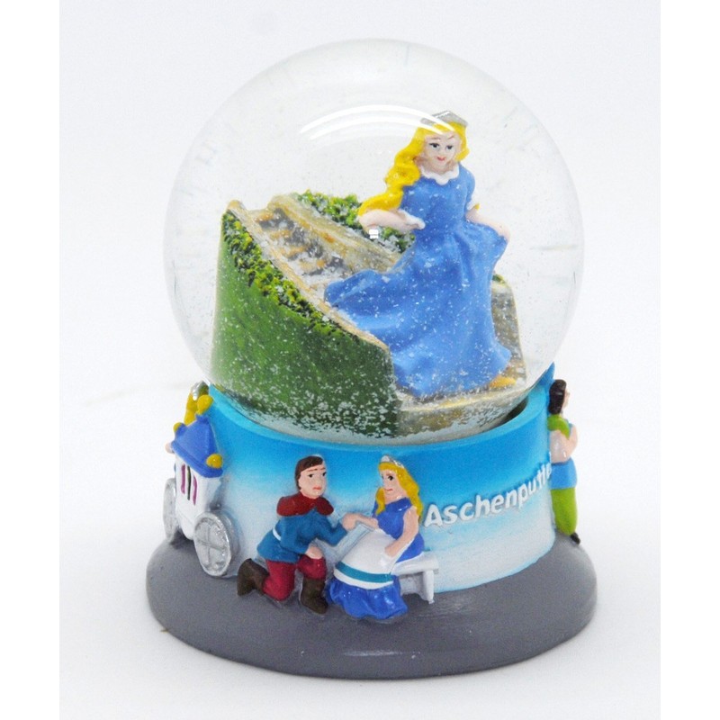 • SNOW GLOBLE: At the centre of this fairytale snow globe, Cinderella (ashella) stands in front of the stairs to the ballroom. On the base, the story of the fairy tale is told in pictures.