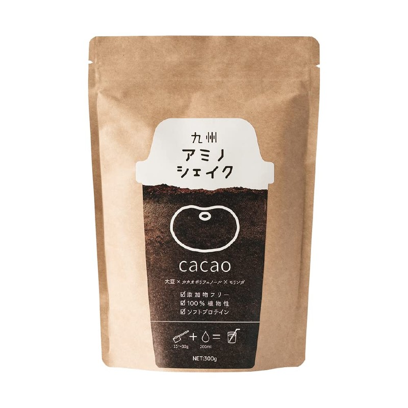 九州アミノシェイク ソフトプロテイン 300g 植物性原料100% 九州産 モリンガ きな粉 ソイプロテイン プロテイン (カカオ味 1袋) 大豆タンパク質