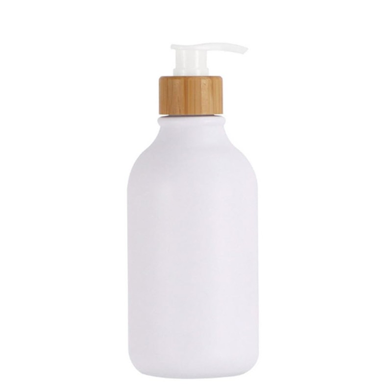 300ml 10oz Upscale Matte White Soap Dispenser Dish Soap Hand Soap Dispenser with Bamboo Pump Refillable Lotion Pump Bottle Cosmetic Container Jar for Bathroom Kitchen