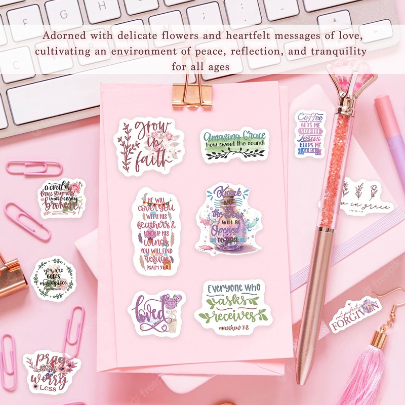 [Transformative Atmosphere]: Create a serene and spiritually nourishing ambiance in your personal spaces with these inspirational stickers, adorned with delicate flowers and heartfelt messages of love, cultivating an environment of peace, reflection, and tranquility for all ages. Ideal for use as Bible accessories for women and Catholic stickers.