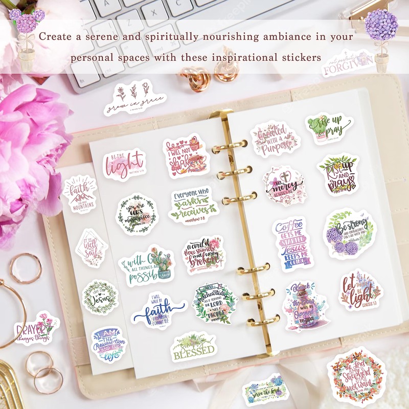 - [Transformative Atmosphere]: Create a serene and spiritually nourishing ambiance in your personal spaces with these inspirational stickers, adorned with delicate flowers and heartfelt messages of love, cultivating an environment of peace, reflection, and tranquility for all ages. Ideal for use as Bible accessories for women and Catholic stickers.