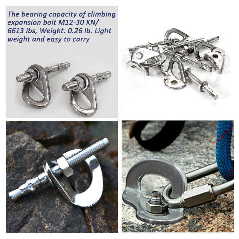 Widely Use: The M12 x 100mm bolt length ensures deep anchoring in wood, concrete, or synthetic walls, while the polished 304 SS surface prevents snagging on climbing ropes. Perfect for permanent anchor installations, rock climbing route setting, or high-traffic adventure parks.