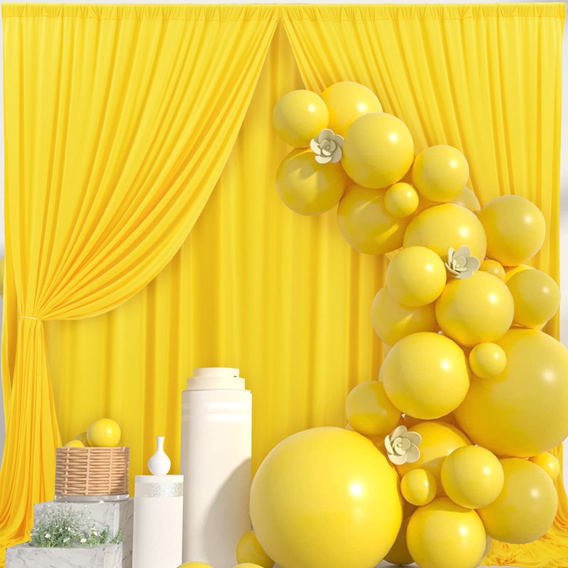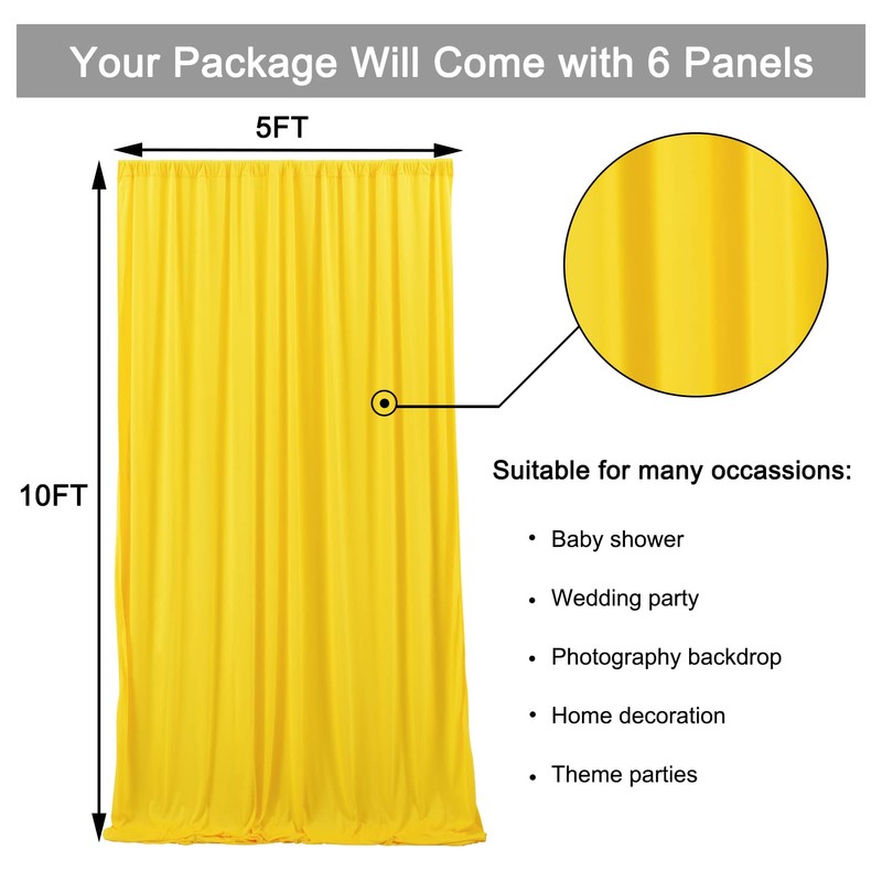 • QUALITY MATERIAL: Yellow backdrop custains are made of 100% quality fabric which is winkle-free, soft touch feeling. Each backdrop background measuring 5ft width and 10ft height, suitable for kinds of parties.