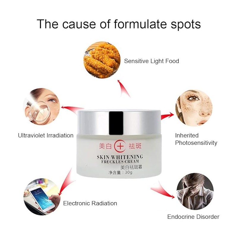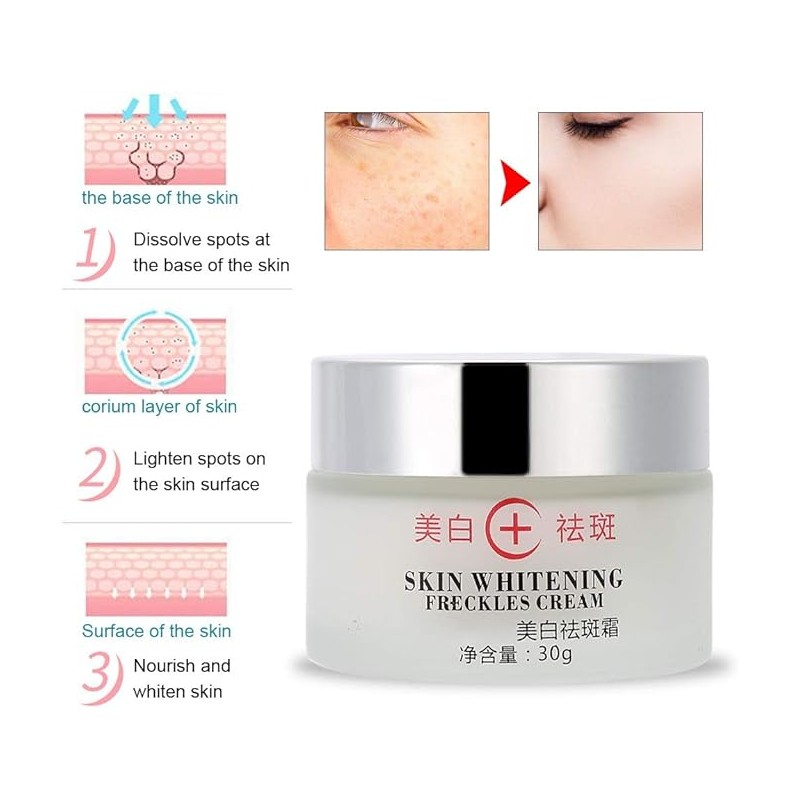 30g Crema Blanqueadora, Crema de Aclarado Facial Anti Melasma para la Eliminación de Manchas de pecas, Rejuvenecimiento de la piel de la cara, Nutrientes y Reparaciones
