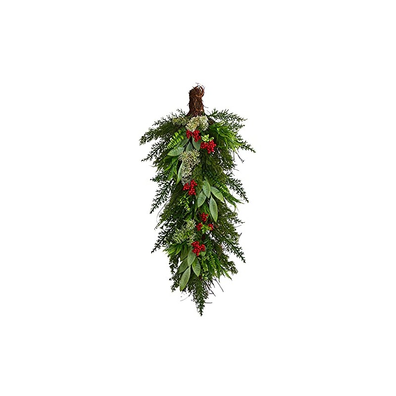 • Crafted from high-quality materials ; Easily hang in any space ; Accented with berries ; Will last many Christmases ; Recommended for indoor use only ; Item will need to be re-shaped when removed from the box; this plant can easily bend for reshaping purposes - please separate and fluff to achieve desired fullness