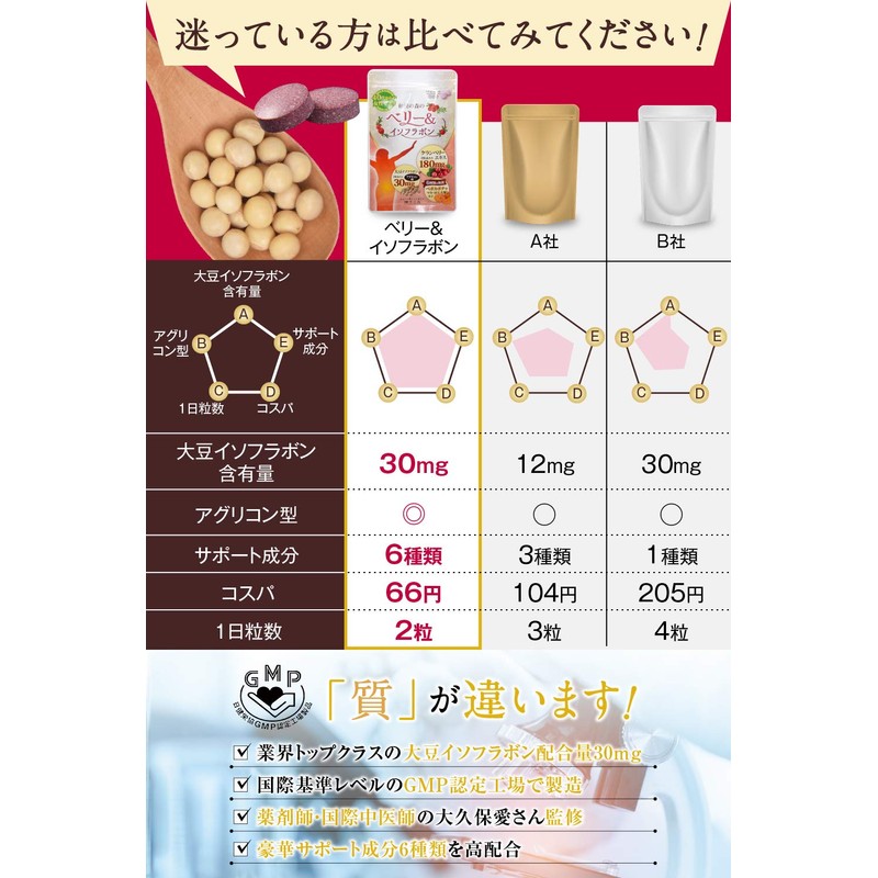 - ✅【成分】大豆イソフラボン(アグリコン型)30mg配合 クランベリー 180mg配合(プロアトシアニジン36mg) 【内容量】60粒(1-2ヶ月分) 【タイプ】錠剤 タブレット【賞味期限】製造日より2年