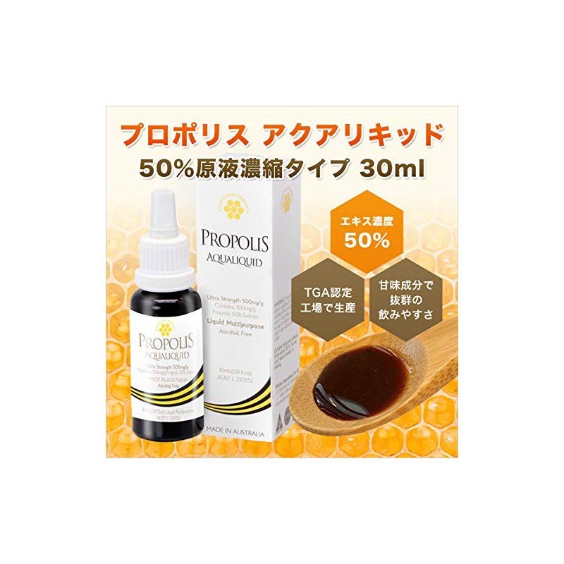 プロポリス アクアリキッド 原液濃縮タイプ 30ml エキス濃度50% ノンアルコール 甘味エキス 天然香料