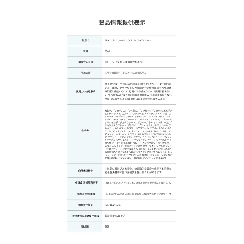 ライエル フアーミング シ力 アイクリーム 30ml 目元たるみ 美容液 目尻 ほうれい線 眉間 クマ シワ しわ 改善 エイジングケア ナイアシンアミド 目元美容液