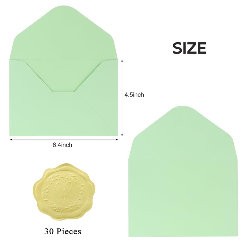 - 1、Package Included: 30 packs of green high quality envelopes, these elegant envelopes with gold stickers, no need to prepare other tools, perfect for your greeting cards, weddings, birthdays, baby christenings, graduation, housewarming, travel souvenirs, holiday party invitations cards.