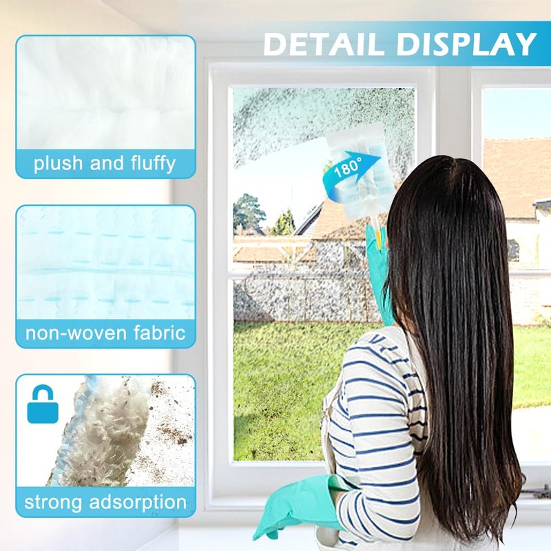 【EFFECTIVE CLEANING】The duster head has strong electrostatic adsorption ability, which can easily adsorb and capture fine dust, debris, pet hair, flying lint, etc., without scratching or damaging the surface of objects.
