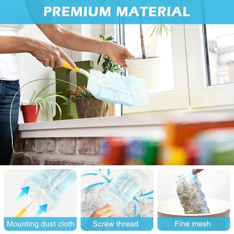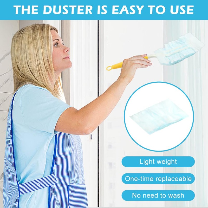 【PACKAGE CONTENT】You will receive 1pc duster handle(2 colors available, 30cm/11.8inch blue, 32cm/12.5inch yellow) and 30pcs duster refills, enough quantity for daily use and replacement. Blue handle is foldable, yellow handle is detahcable.