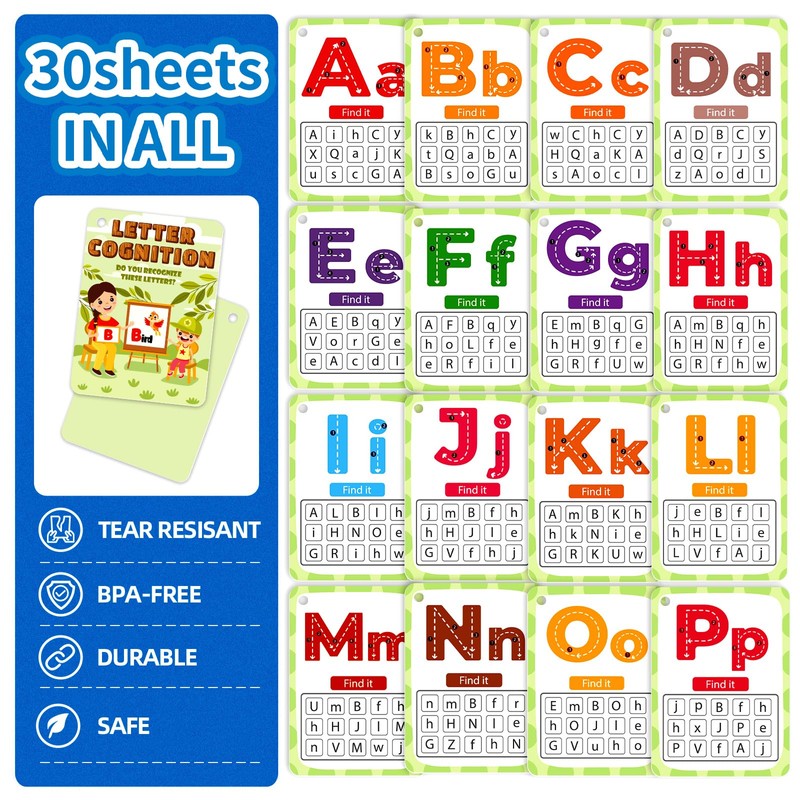 - EDUCATIONAL AND FUN: This reusable letter cognition flash card contains 30 different alphabet cards .Featuring bright and colorful images, These portable alphabetic flashcard is great tool for early learners.