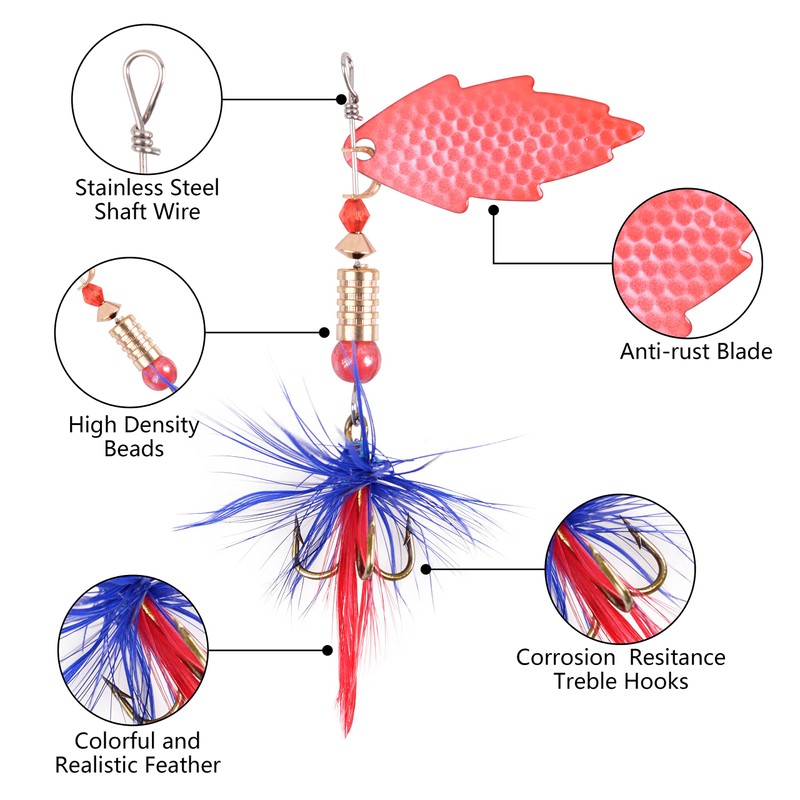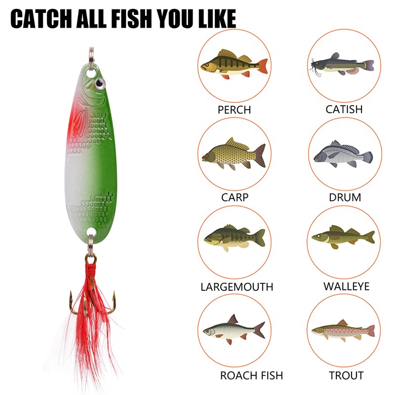 - 【DURABLE MATERIAL】These metal fishing lures made of high-quality material which is rust-resistant and durable. Fishing spoons lures equipped with a sharp and strong treble hook, with great penetration power and the fish doesn't run away easily.