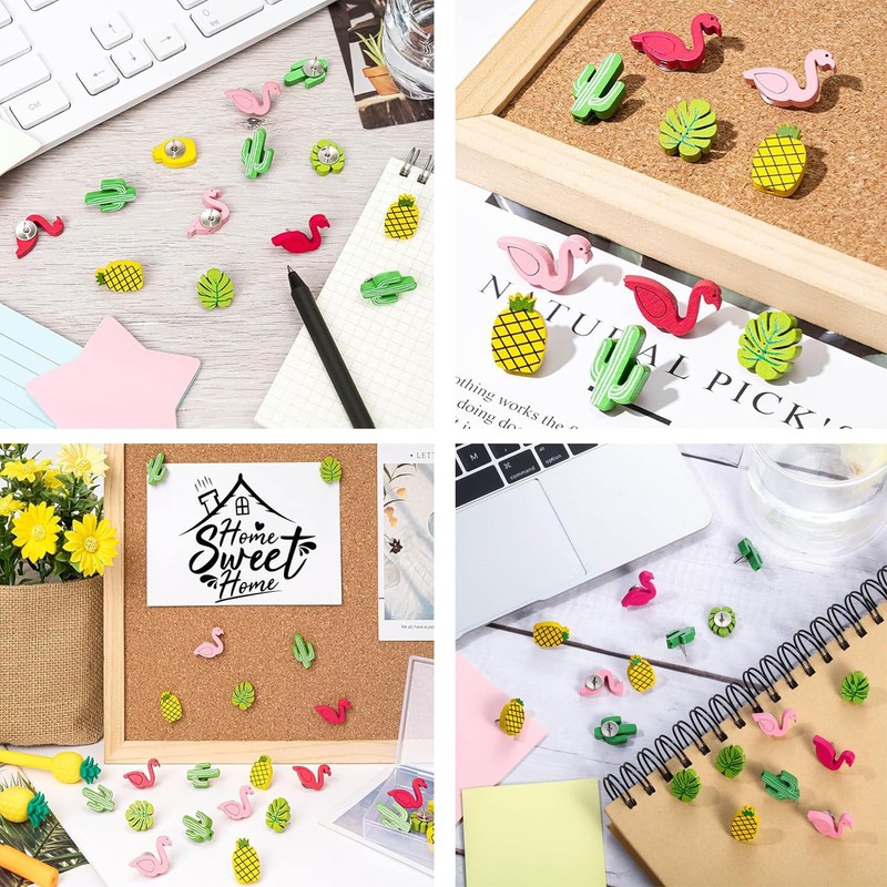 • Uniquely Designed: Featuring five charming designs-pink flamingo, rose red flamingo, pineapple, turtle leaf, and cactus-these push pins add a touch of personality and color to any space. Their delightful shapes and vibrant hues are sure to brighten your mood.