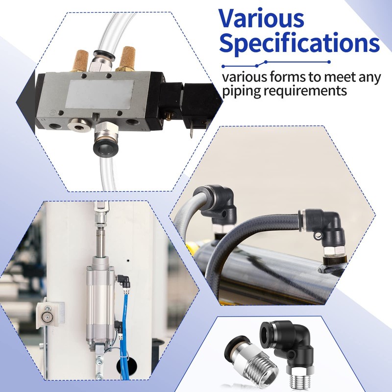 - Wide range of application: you can use pneumatic hose fittings in various occasions, which are suitable for all kinds of PU/ PA/ PE/ PVC items, you can also use them in air, vacuum, convenient for you to use in daily life