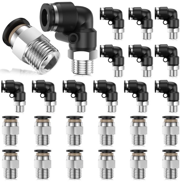 30Pieces Pneumatic Elbow Straight Combination 1/4 Inch Tube OD x 1/8 Inch NPT Push to Connect Tube Fittings Male Thread Straight Push Quick Release Connectors Air Tool Connectors Connect Fittings