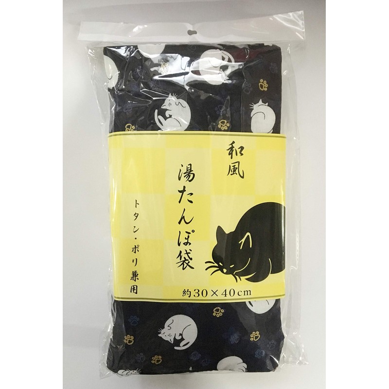 北陸土井工業 湯たんぽ 紺 約30X40cm 和風・湯たんぽ袋 猫