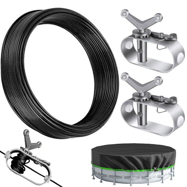 31 m wire tension rope for pool tarpaulins, wire tension rope, length 31 m with 2 pieces turnbuckle for rope pool cover, tension lock rope tensioner wire rope for pool tarpaulin