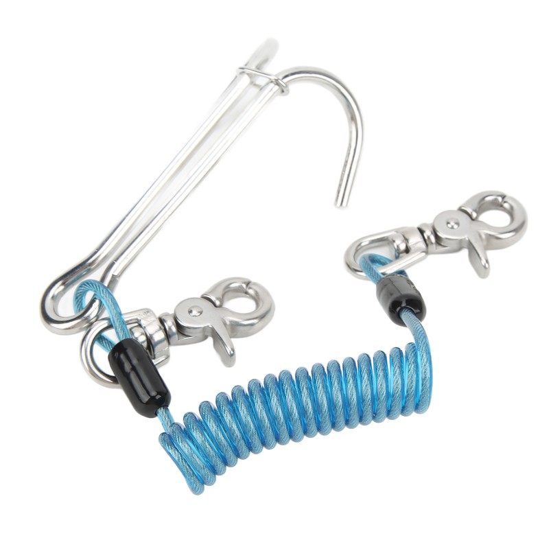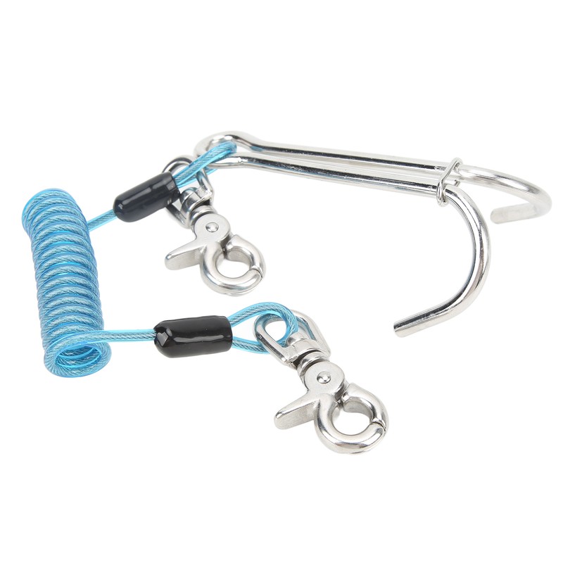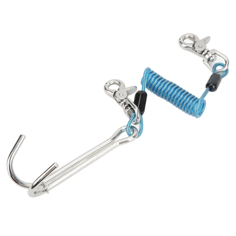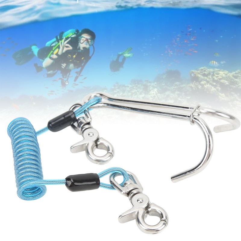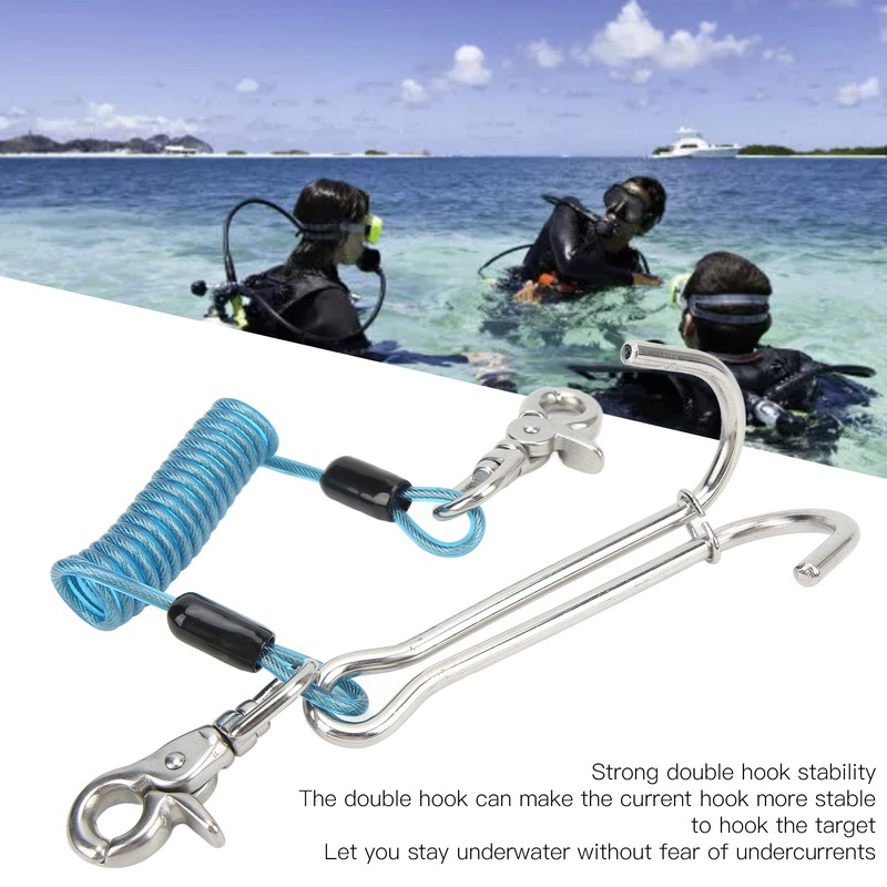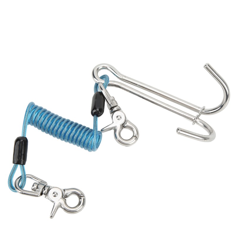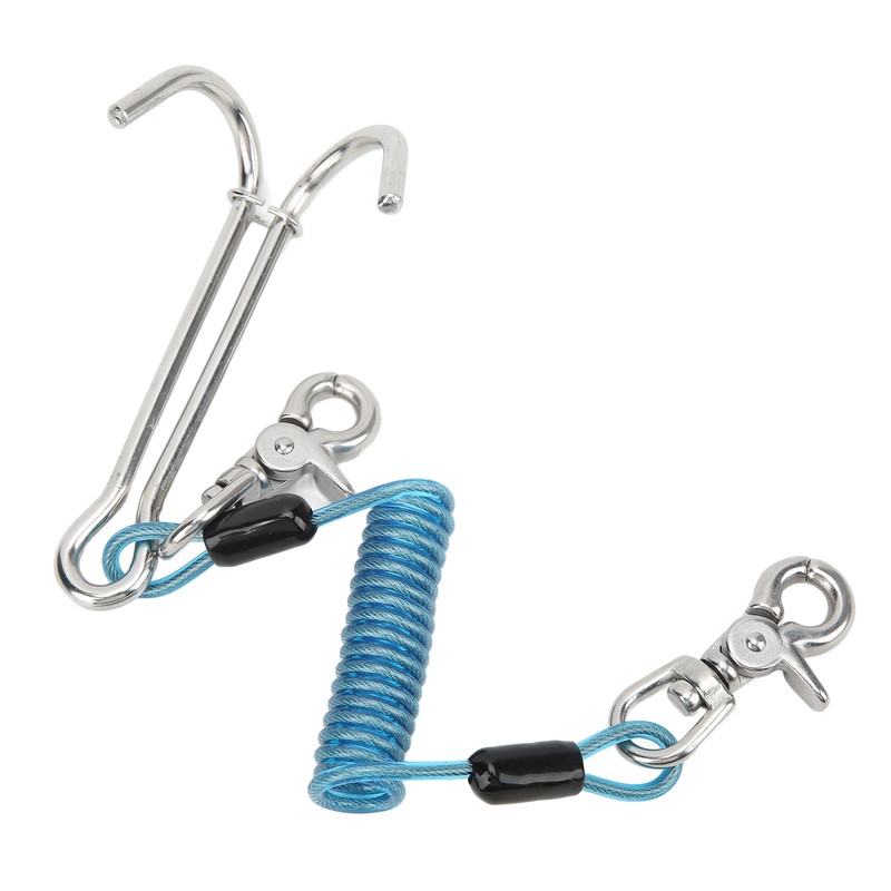 316 Stainless Steel Diving Current Hook Double Reef Drift Hook with Spiral Coil LanyardBlue
