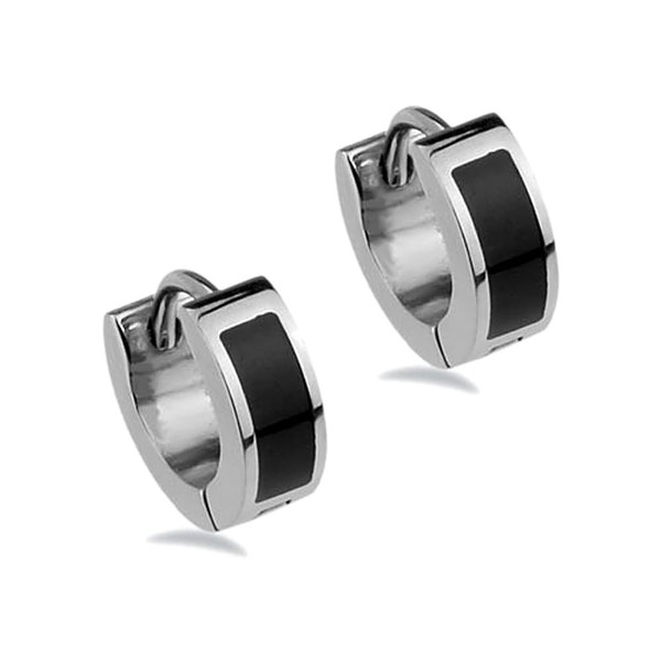 316L Surgical Stainless Steel Earrings High Polished Black Center Flat Style Huggie Hoop Earring, (4mm X 11mm)