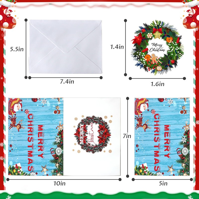 - VALUE PACKAGE: Our Christmas cards set includes 32pcs unique design greeting cards, 35pcs white envelopes and 36pcs Christmas stickers to seal the envelopes, all packaged in a storage box; These Christmas cards with envelopes and stickers are perfect gifts to express your love and wishes to your families and friends on Christmas!